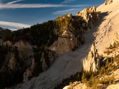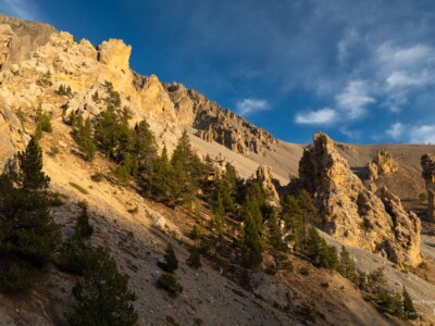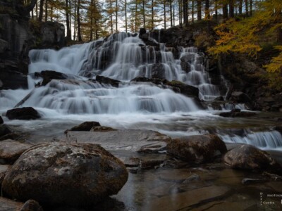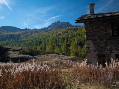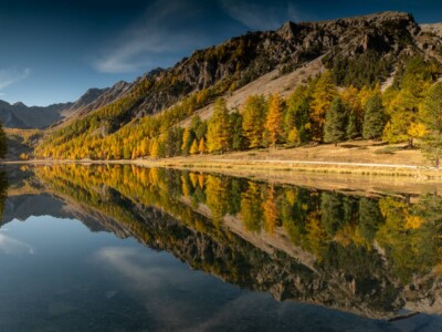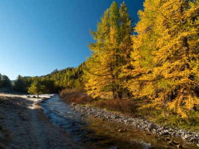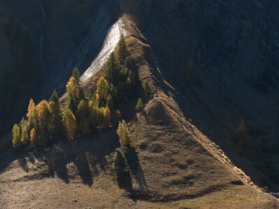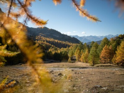 Les mélèzes dominent largement dans cette région, en octobre, ils se transforment totalement, virant du vert au jaune, puis à l’orange et au marron avant de perdre leurs aiguilles avec l’arrivée de la neige et du froid.
